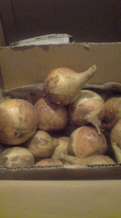 実家から送られてきた玉ねぎーず。20個超えてたんだよな。これ一人で全部完食しろと…!?
